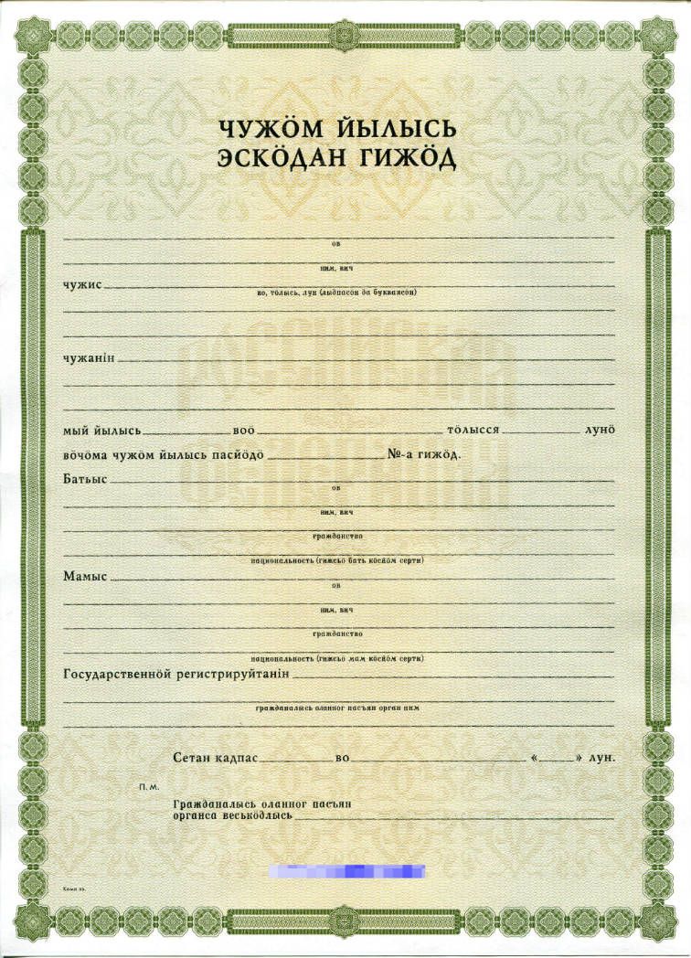 - Документ: Свидетельство о рождении республика Коми