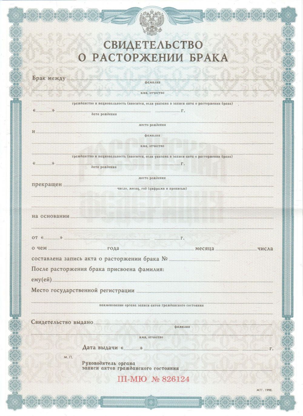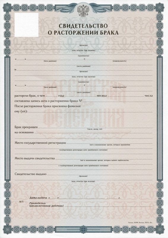- Документ: Свидетельство о расторжении брака РФ