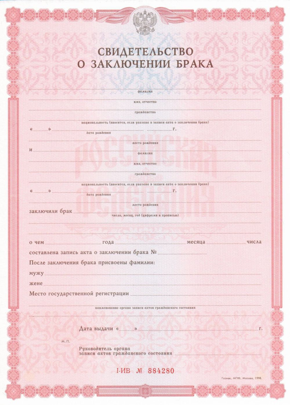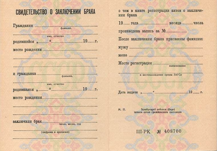 - Документ: Свидетельство о заключении брака РФ